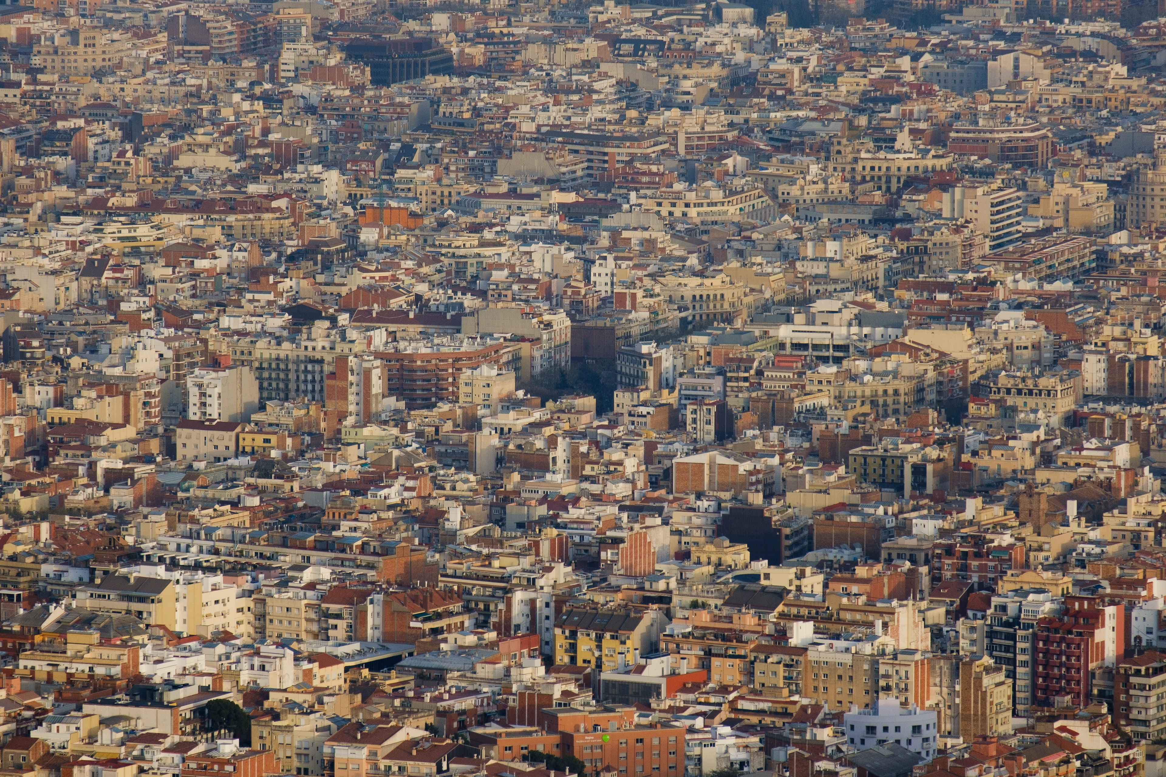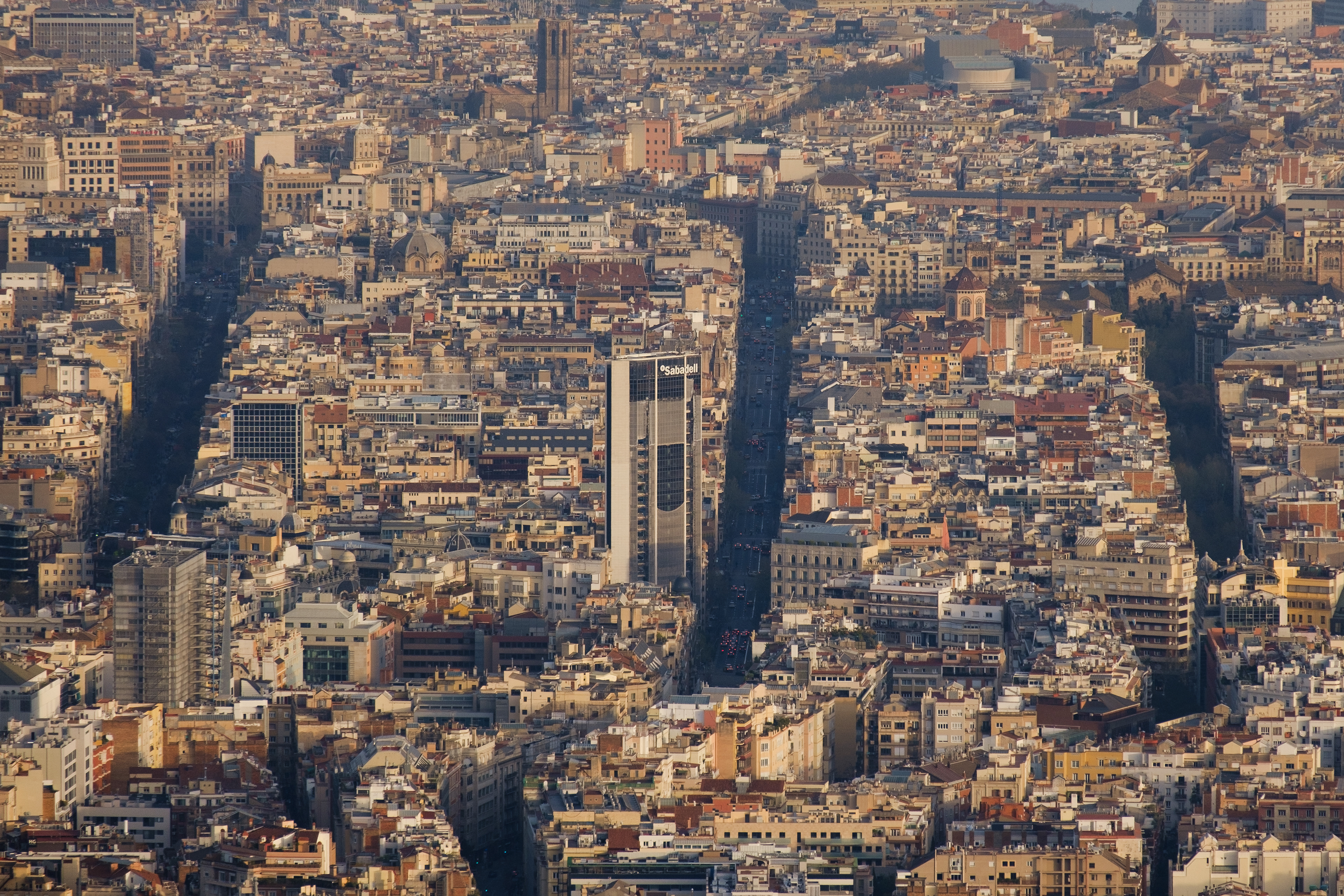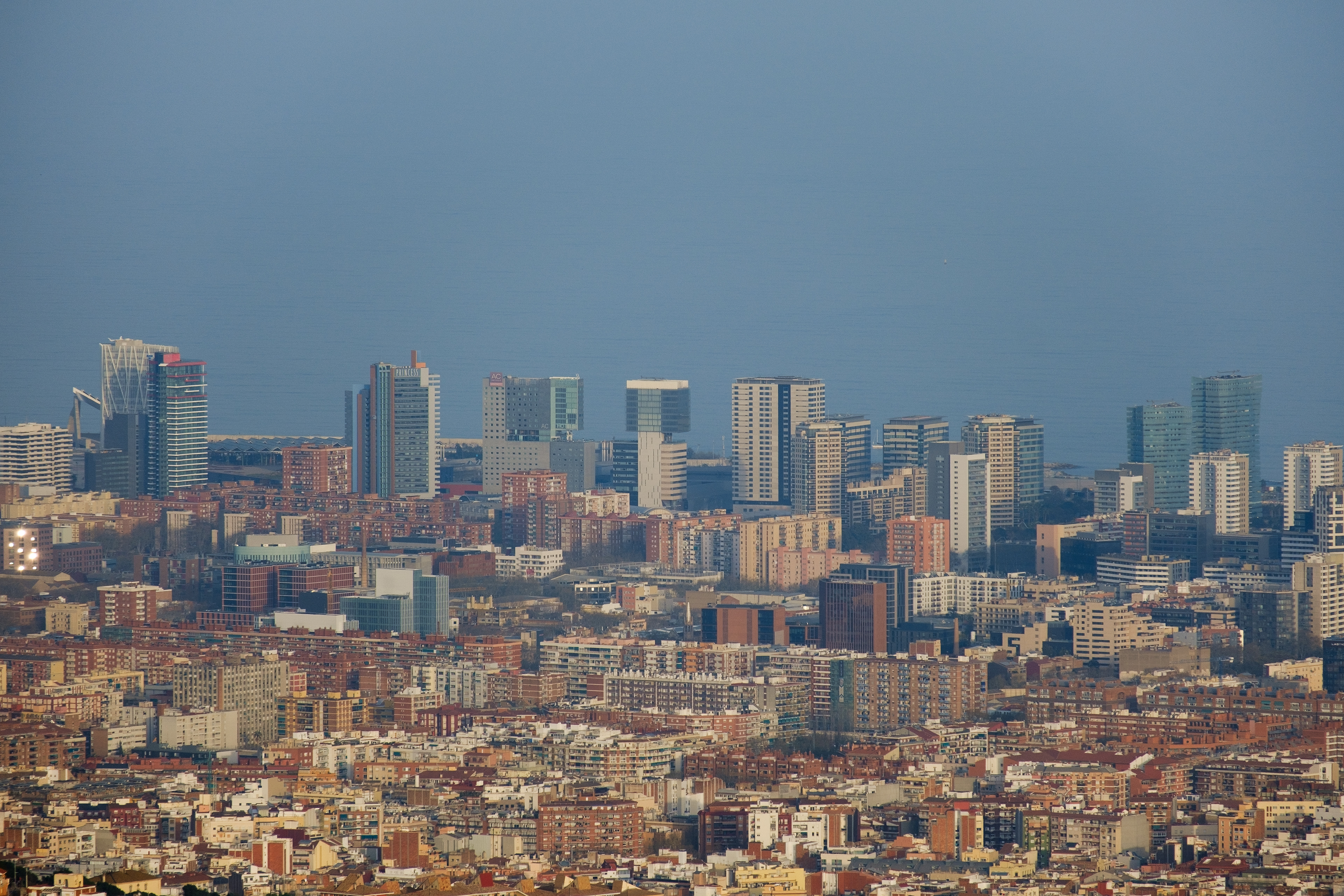 Contrasting perspectives of Barcelona, the streets of Poblenou and distant skyline viewed from Tibidabo.